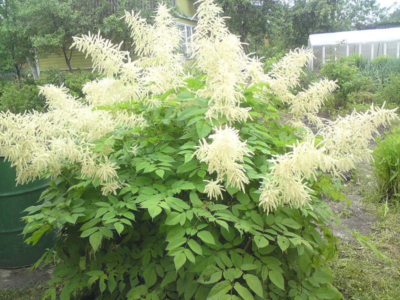 Волжанка, или Арункус– это крупные корневищные растения с красивыми рассеченными перистыми листьями, с крупными раскидистыми соцветиями-метелками из мелких цветков. Растения двудомные. Цветут в середине лета. Долгое время растения не требуют пересадки.Месторасположение: наибольшего эффекта волжанки достигают при легком затенении и достаточном запасе влаги в почве. Неплохо развиваются и на открытых местах. На солнцепеке растения выгорают, их листья приобретают желтоватый оттенок.
