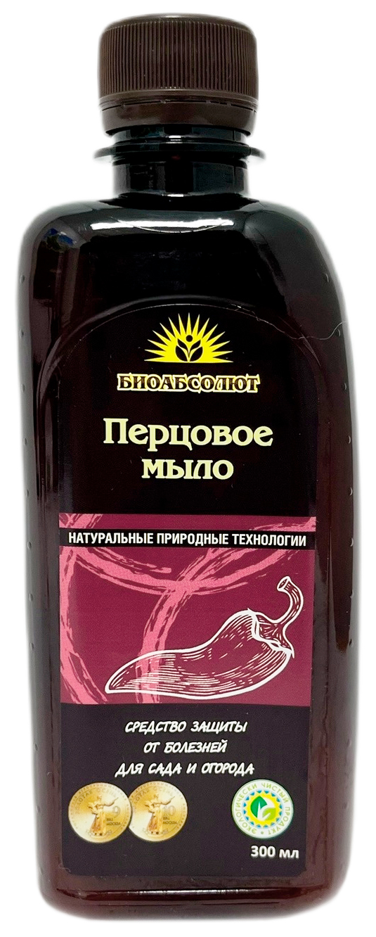 ПЕРЦОВОЕ МЫЛО для растений БИОАБСОЛЮТ 300млУникальное эффективное средство с фунгицидным эффектом для профилактики и лечения растений. Входящие в состав компоненты красного перца оказывают лечебный эффект при бактериальных заболеваниях и губительно действуют на насекомых-вредителей.