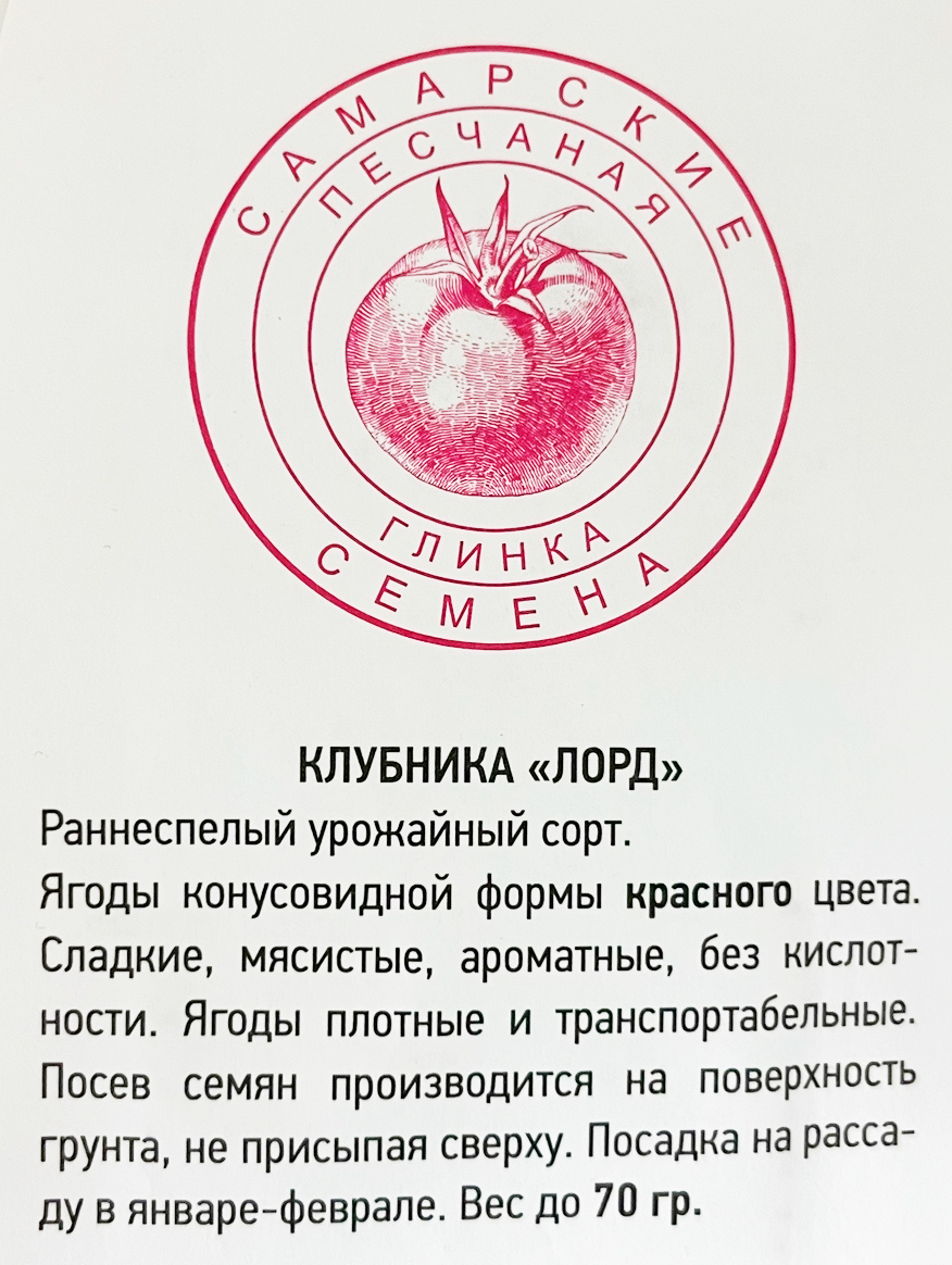 Клубника ЛордРаннеспелый урожайный сорт. Ягоды конусовидной формы красного цвета. Сладкие, мясистые, ароматные, без кислотности. Ягоды плотные и транспортабельные. Посев семян производится на поверхность грунта, не присыпая сверху.
