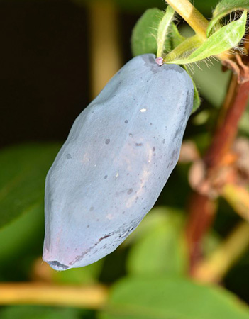 Жимолость камчатская Югана Lonicera kamtschatica Jugana Плоды созревают в середине июля. Осыпаемость средняя. Созревание дружное. Плоды до 1,8 г, кувшиновидные.Хорошо переносят заморозку, не теряя сахаров. Урожайность до 6, 5 кг с куста.Характеристики